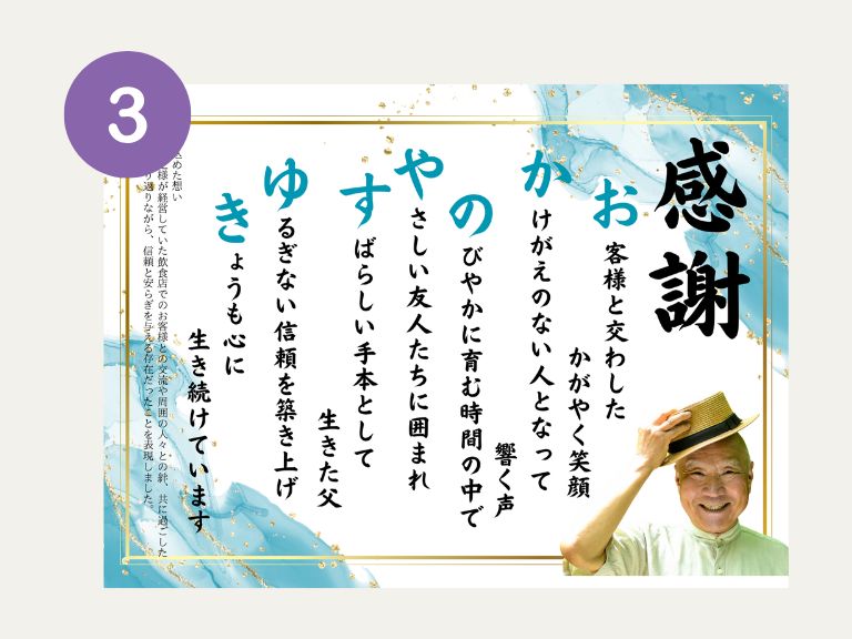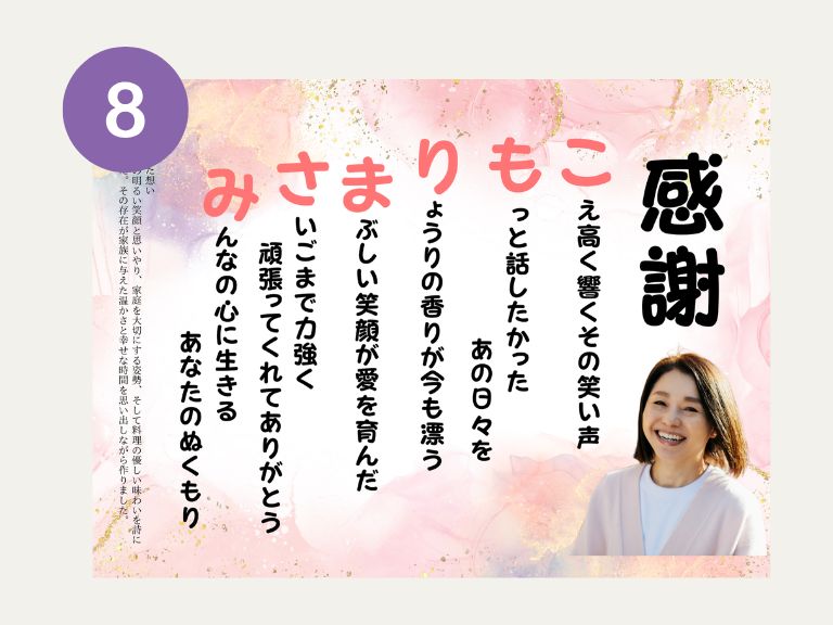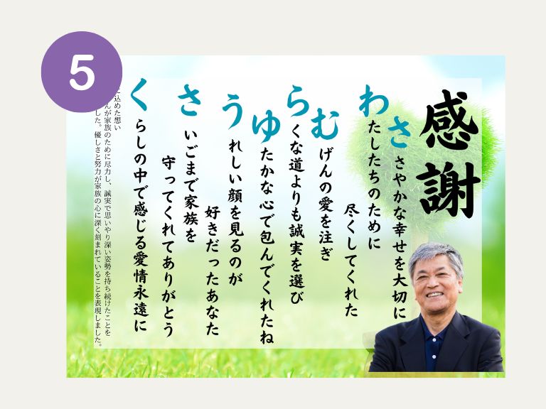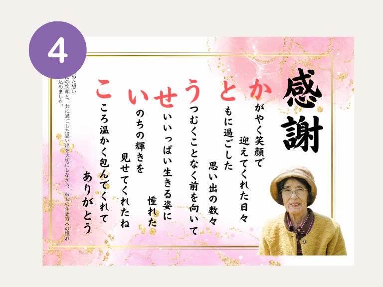 LINEでのやり取りがとても丁寧で、作っていただいた詩も絆を感じました!